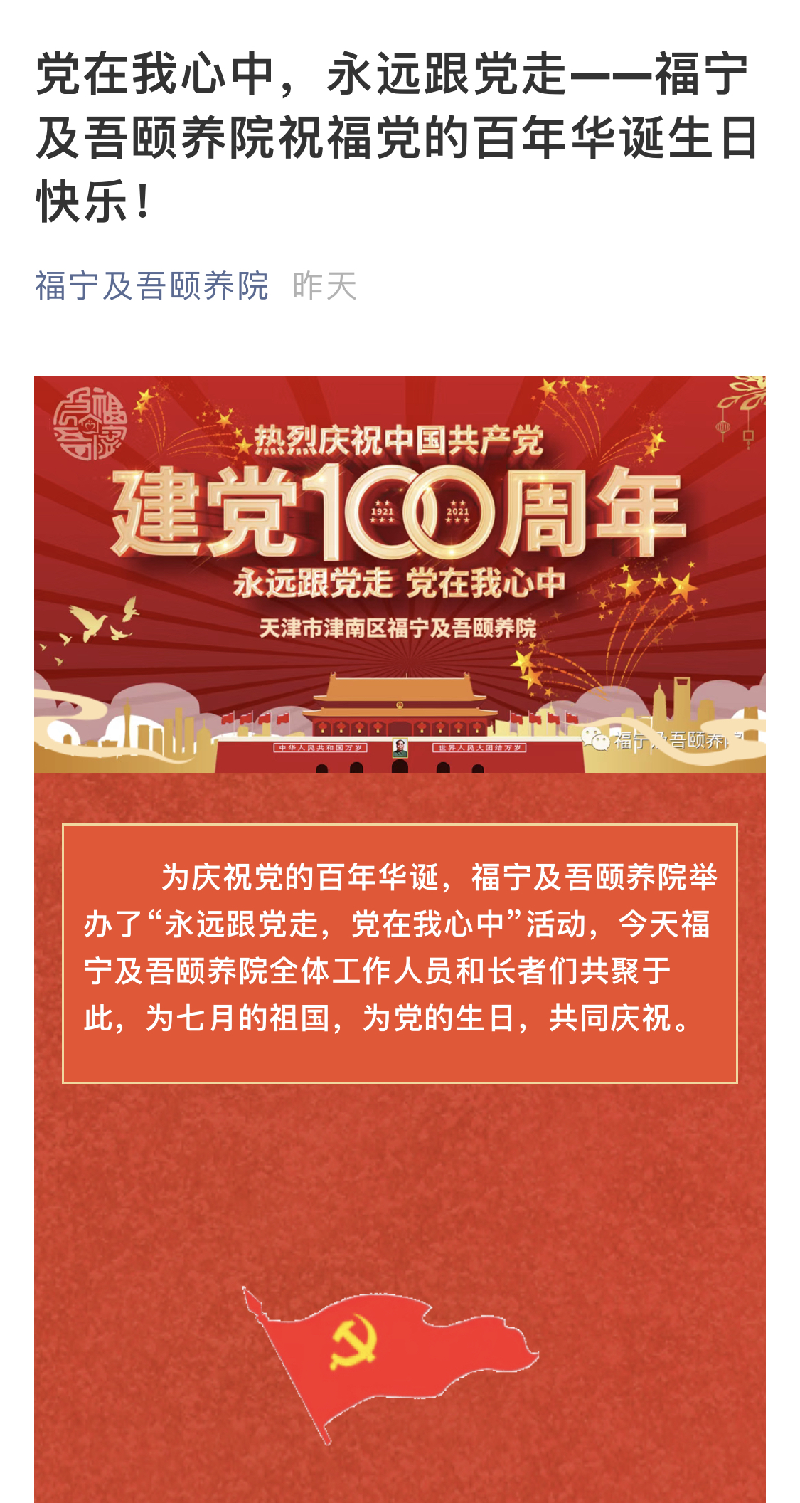 党在我心中的,永远跟党走——福宁及吾祝福党的百年华诞生日快乐!