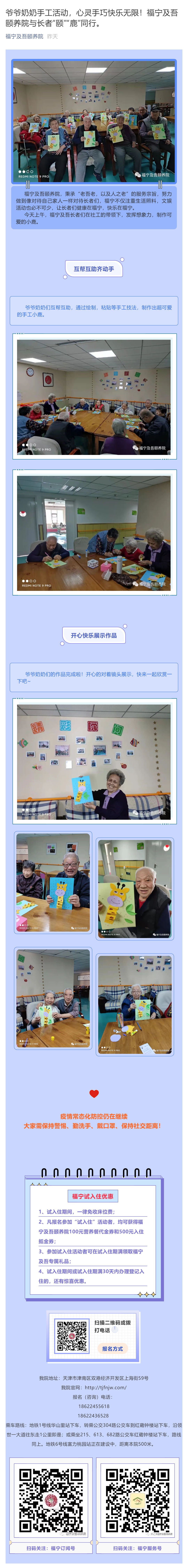 爷爷奶奶手工活动,心灵手巧快乐无限!福宁及吾颐养院与长者“颐”“鹿”同行~